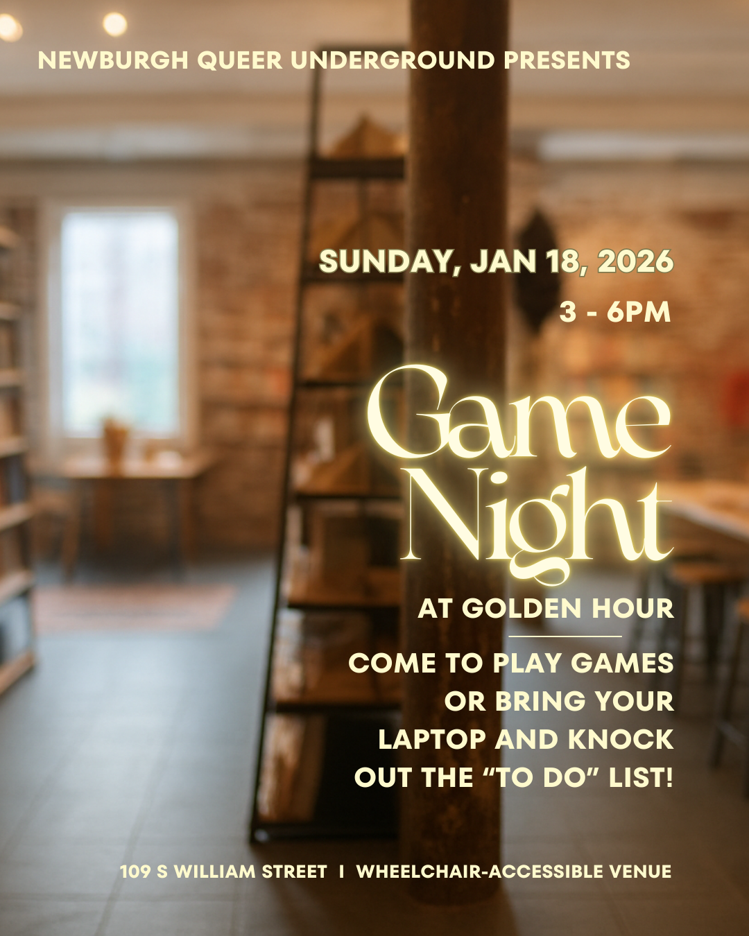 Sunday, January 18, 3-6PM : Game Night with Newburgh Queer Underground